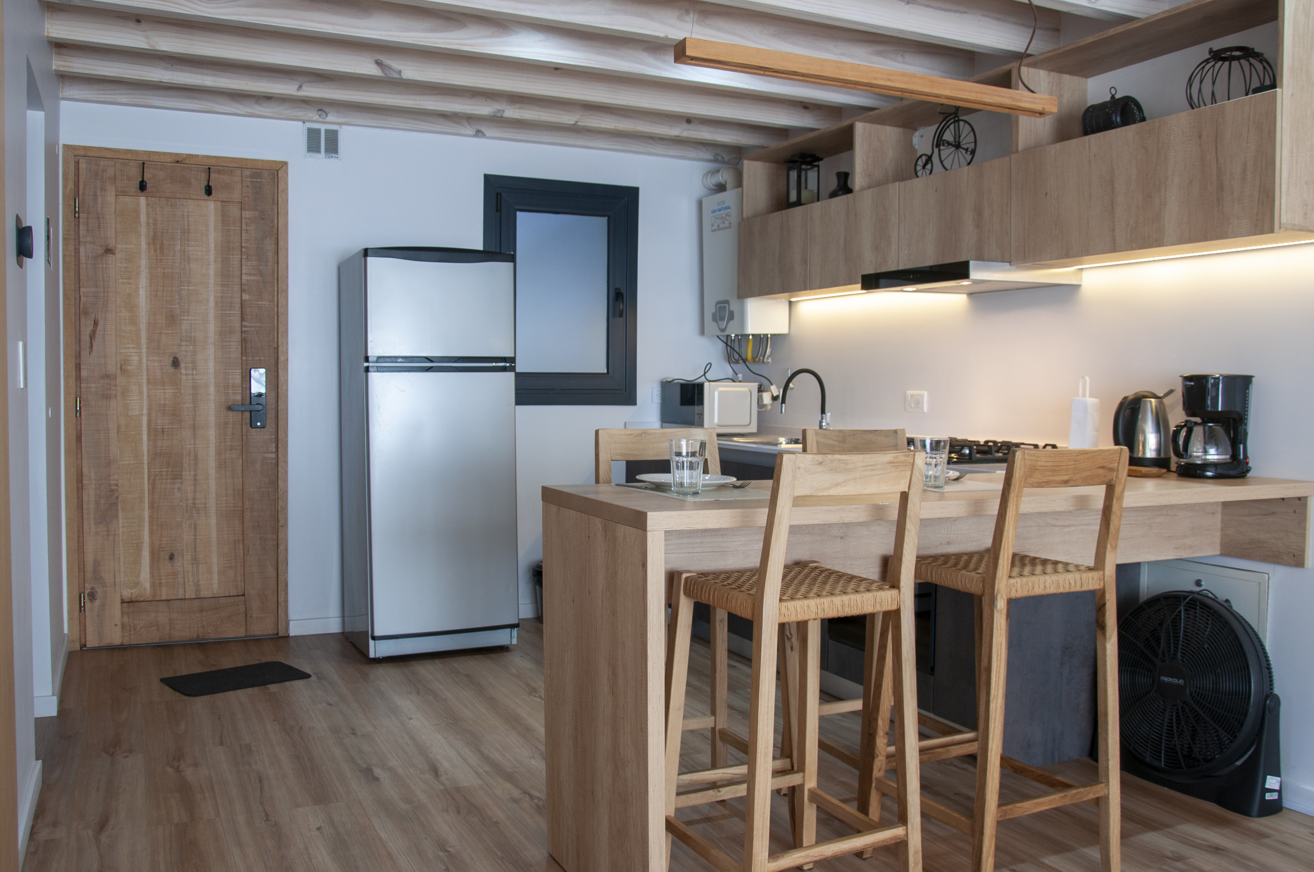 La cocina americana está completamente equipada con electrodomésticos modernos, incluyendo refrigerador, congelador, horno, microondas, cafetera, tostadora, hervidor eléctrico y todos los utensilios necesarios para preparar deliciosas comidas. La calefacción central garantiza un ambiente cálido y acogedor durante los días más fríos.