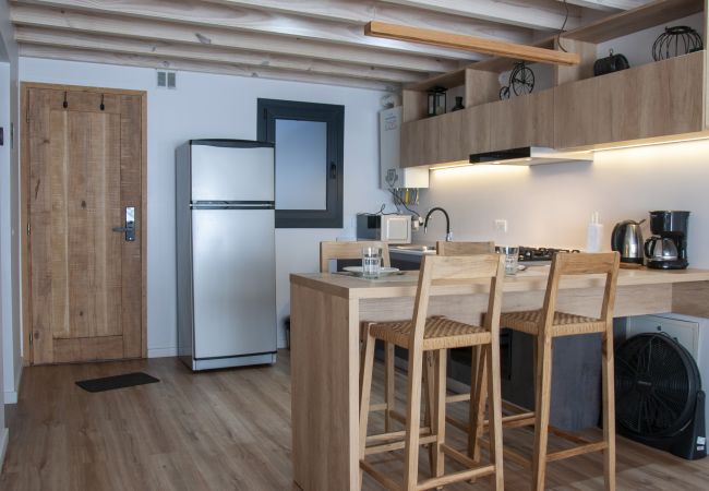 Este apartamento de 55 metros cuadrados está totalmente equipado y decorado con un gusto exquisito, ofreciendo un espacio íntimo y funcional. Cuenta con una habitación principal con una cama matrimonial y un sofá cama adicional, ideal para acomodar hasta 4 personas cómodamente.