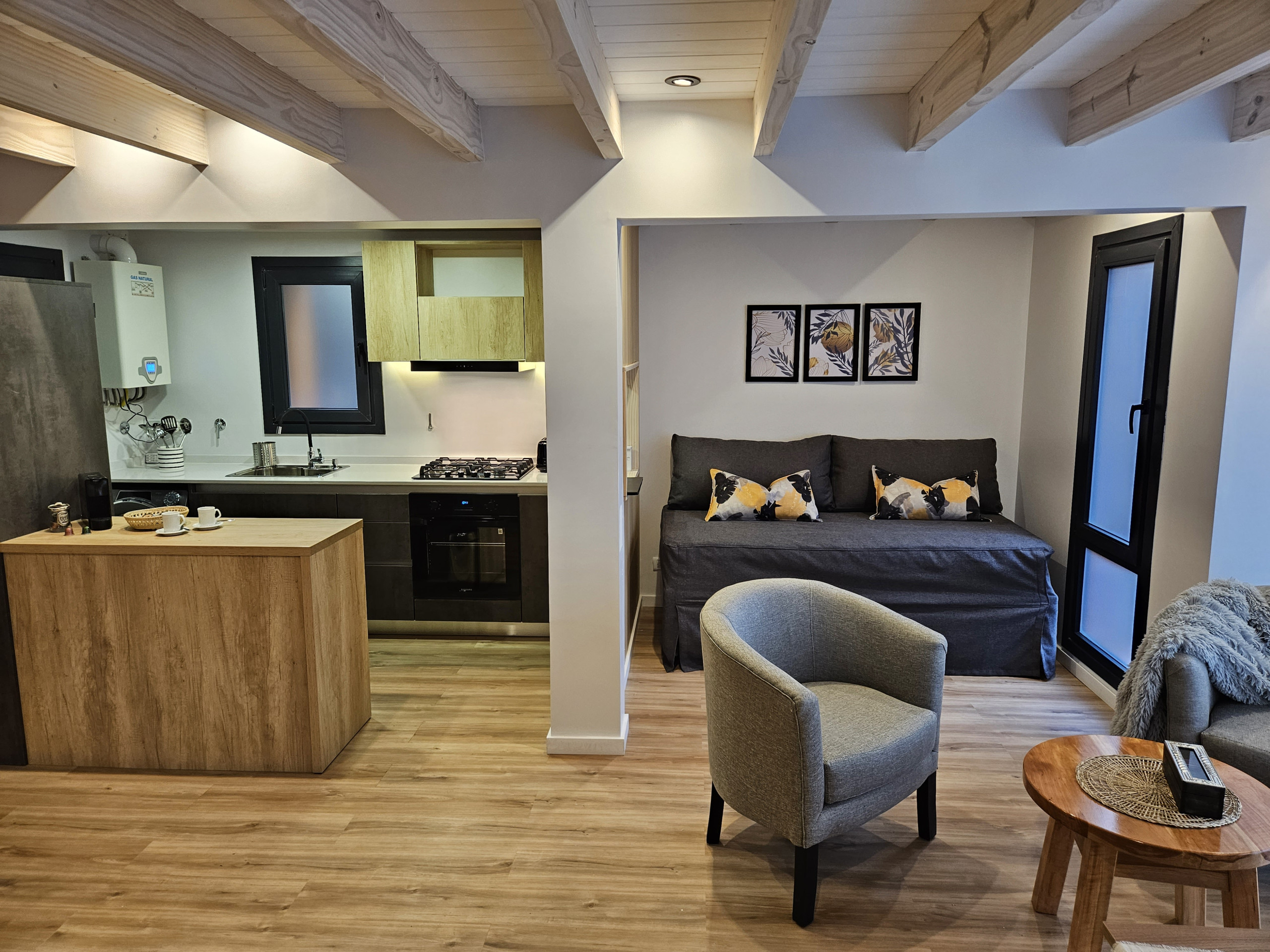 Este apartamento de 55 metros cuadrados está totalmente equipado y decorado con un gusto exquisito, ofreciendo un espacio íntimo y funcional. Cuenta con una habitación principal con una cama matrimonial y un sofá cama adicional, ideal para acomodar hasta 4 personas cómodamente.
