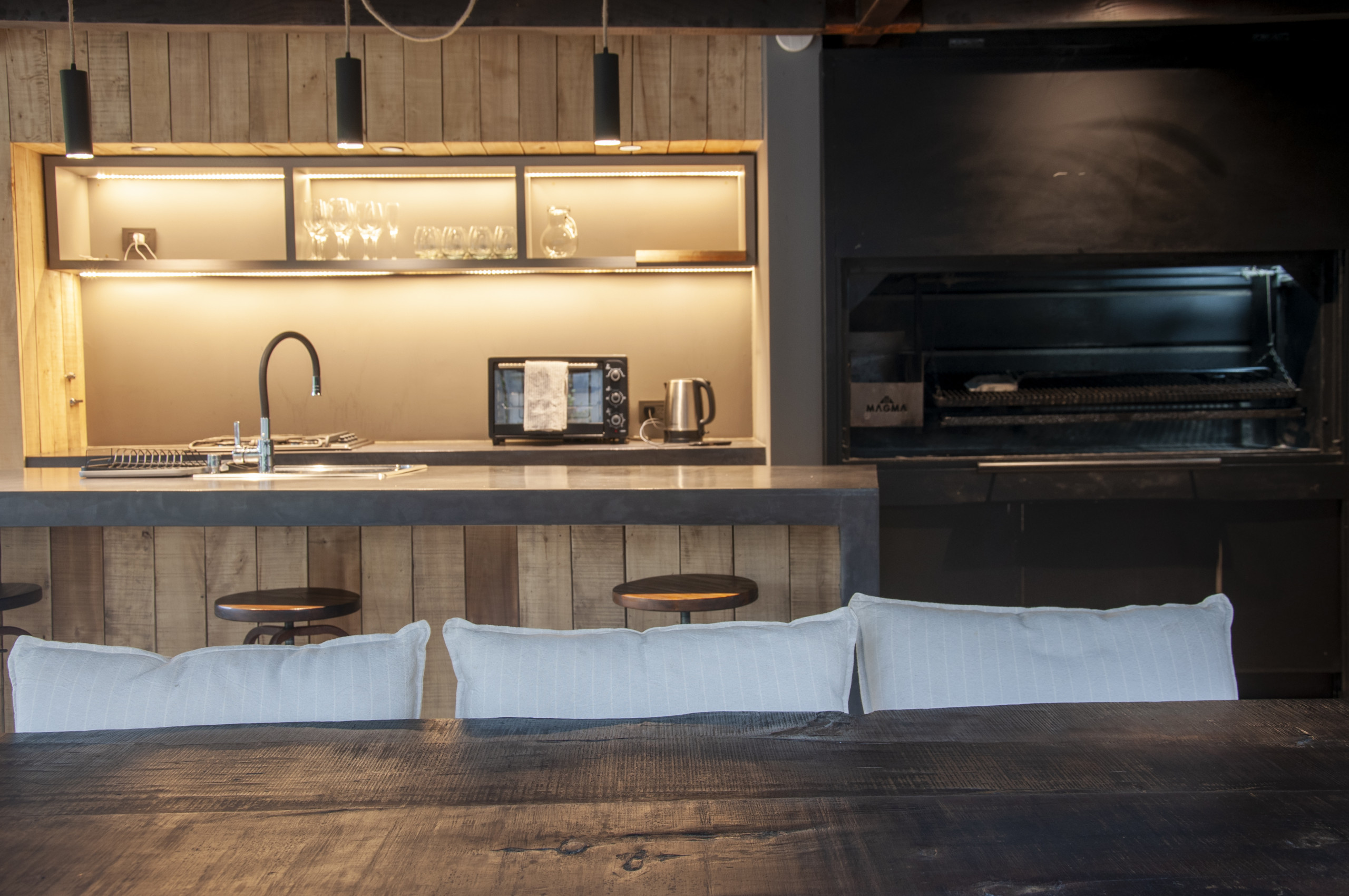 The apartment in San Martin de los Andes has 1 bedrooms and has capacity for 2 people. The apartment is tastefully-furnished, is fully-equiped, and is 73 m². It has views of the mountain. The property is located 200 m from Supermercados Todo supermarket, 500 m from Pizza Cala the restaurant, 900 m from Pantera the restaurant, 900 m from Forastera coffee shop, 1 km from Ramón Carrillo hospital, 1 km from Lago Lácar lake, 1 km from Terminal San Martín de los Andes bus station, 1 km from Costanera Lácar sand beach, 2 km from Parque Nacional Lanín nature reserve, 15 km from Río Quilquihue river, 15 km from Lago Lolog lake, 15 km from El Cipresal de Lolog rock beach, 15 km from Chapelco Golf golf course, 15 km from Aeropuerto de Chapelco airport, 16 km from El Desafío golf course, 20 km from Cerro Chapelco ski slope, 30 km from Lago Hermoso Ski Resort ski slope, 200 km from Aeropuerto Internacional de Bariloche international airport. The house is situated in a charming neighborhood surrounded by the forest. The accommodation is equipped with the following items: garden, garden furniture, washing machine, dryer, barbecue, internet (Wi-Fi), hair dryer, balcony, central heating, communal heated swimming pool, open-air parking the same building, 1 TV. In the gas open plan kitchen, refrigerator, oven, freezer, dishes/cutlery, kitchen utensils, coffee machine, toaster and kettle are provided.